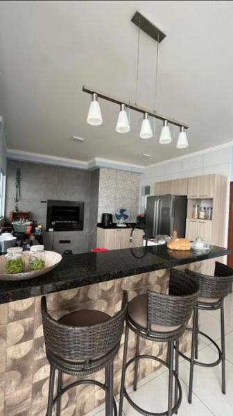 É uma Excelente casa no bairro Panamá, perfeita para você e sua família. O imóvel conta com garagem coberta para 2 carros, feita em belíssima estrutura de madeira, e 1 carro descoberto, 4 quartos (sendo 1 suíte), banheiro social, despensa, sala de TV, sala de estar e sala de jantar junto com a cozinha estilo americana com churrasqueira e fogão a lenha. Possui também jardim separado da sala por blindex, dando conforto e estilo à sua nova casa. Área de serviço na parte externa.
